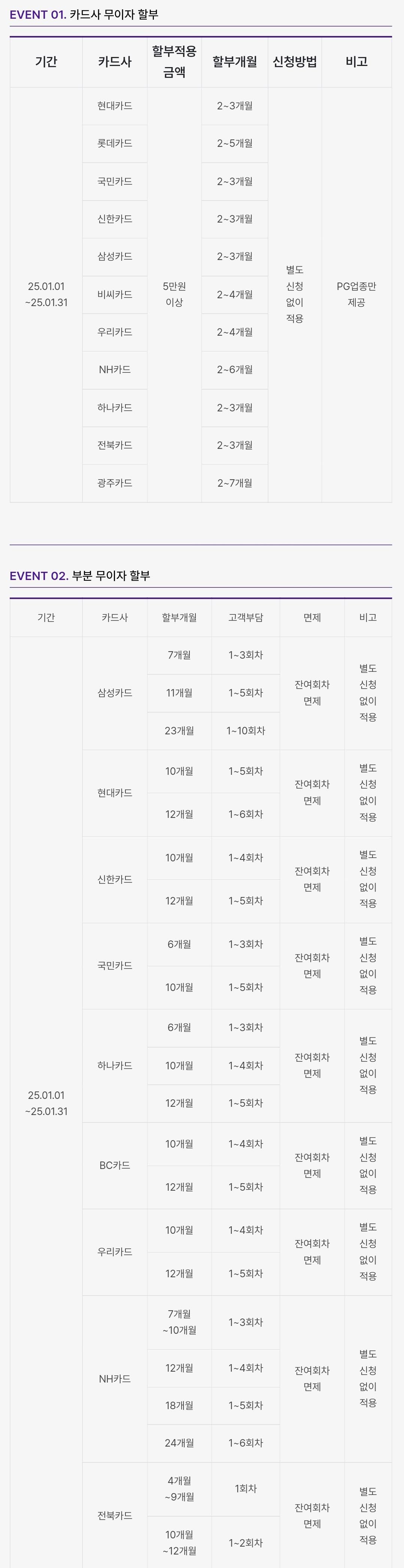▷ BC카드 및 NH농협 카드의 경우 사전 신청 고객에 한하여 금액에 따른 부분 무이자 우대 회차 적용됩니다.
